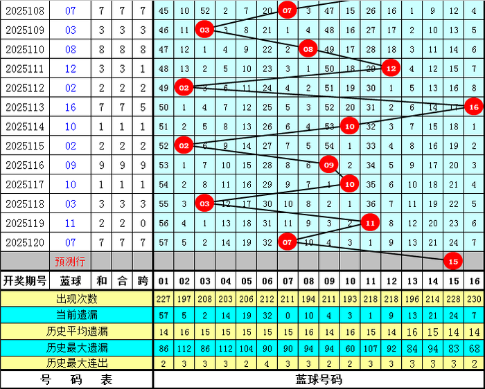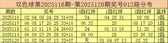 1路红球号码:上期开出了4个,进展相对活跃。最近5期开出12个1路红球号码:01 04 07 10 13 16 25 28 31,其中小 号1路红球号码进展活跃,奇偶1路红球号码数出现次数相配。本期参考1路红球号码:04 07 10 25 28。